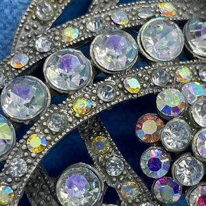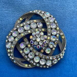 Vintage rhinestone knot brooch with fine metal detail pewter