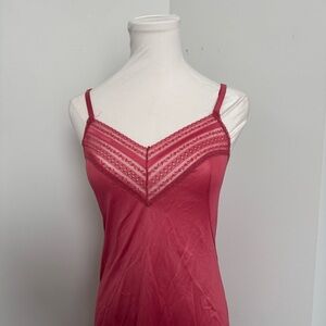 Vintage rose blush Elegant Pink Lace Trim Slip Dress 34 fairy coquette dreamy
