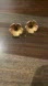 In good vintage condition. Gold toned, green stone at middle. Screw backs.