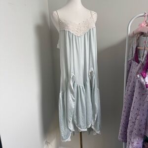 Vintage satin lace slip dress pastel blue babydoll nightgown coquette fairy XL
