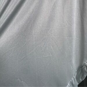 Ethereal and romantic vintage slip dress in a dreamy pastel blue satin with ivory lace trim. Features delicate spaghetti straps, lace-trimmed neckline with embroidery, and a flowing drop-waist skirt with ruffled panels for a soft, fairycore silhouette. Perfect as lingerie, a layering piece, or styled as a dress for a whimsigoth / cottagecore aesthetic.