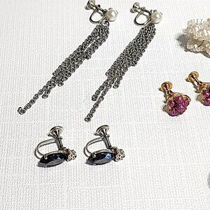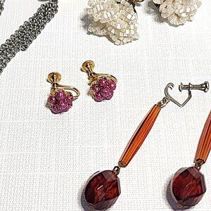 Vintage screwback earring bundle, West Germany, faux pearl, floral etc.