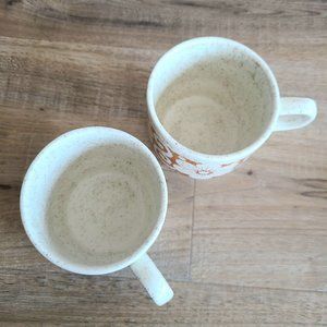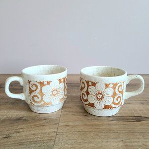 Vintage 1970s set of 2 Biltons stackable speckled coffee/tea cups/mugs with light brown floral design. 3''x 3''. They have a couple tiny chips on the bottom (last picture). Overall is good condition.