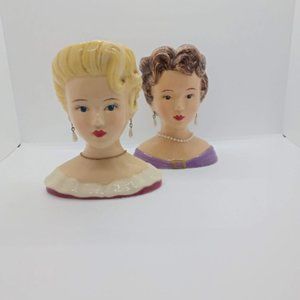 Vintage set of 2 Lady head Vase collectibles
