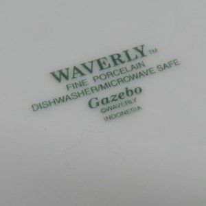 Vintage set of 8 coffee/tea mugs with sugar and creamer. Never used. Waverly Fine Porcelain "Gazebo" pattern. Mugs are 2 1/2 x 3 inches. Creamer 3 1/2 inches and sugar bowl 4 x 6 inches including handles.