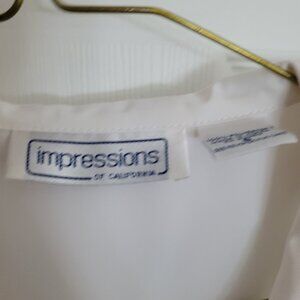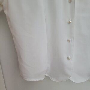 White vintage blouse with pearl buttons, collar, scallop hem and princess seams