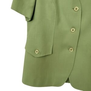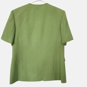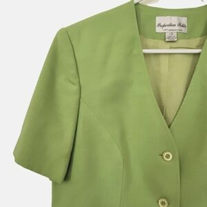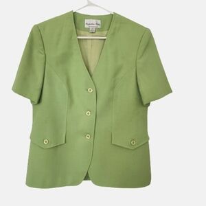 Proportion Petite short sleeve very Nice in trend green apple color. Complet lined, in very Nice condition. No fabric tag but it looks like à Lenin, Cotton blend