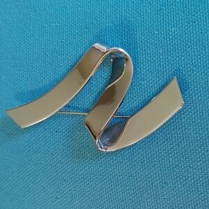 Vintage signed Monet Silver Tone Ribbon, Zig Zag Brooch