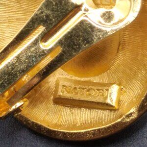 Vintage signed Natori Gold Plated Yellow Glass Stone Clip-On Earrings