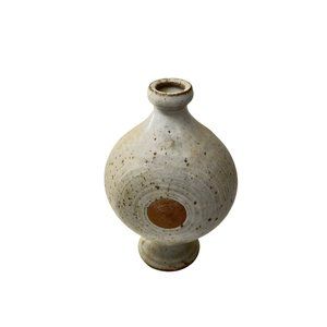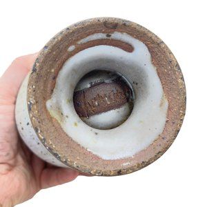 Redware stone pottery vase -No damage - stands 8 1/2" tall - red stoneware - signature may read : Ali MacKinly