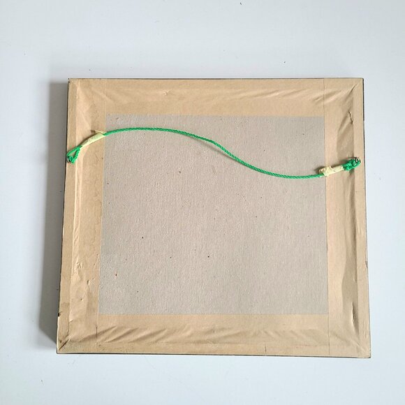 12'' x 11''. In wooden frame, matted, covered with glass.