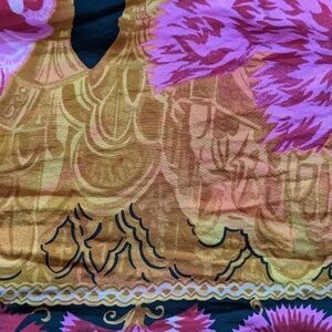 A very unique design Vintage silk blend bright abstract floral print silk shirt Carmen back Large
