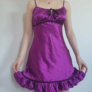 Vintage silky milkmaid slip dress with ruffles ✦ purple and black mini night gow