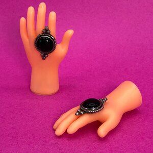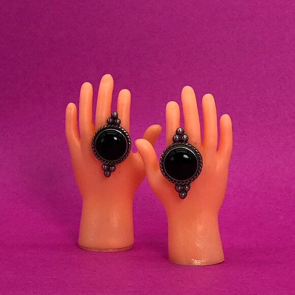 Vintage silver earrings with black cabochon stone 925 - 00G00O