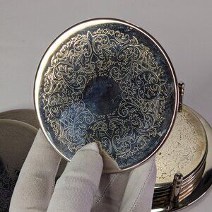 Set of 7 silver-plated coasters with coaster by International Silver Company.