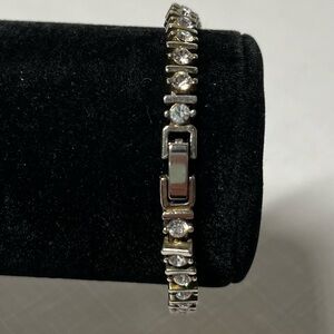 Vintage silver-tone tennis bracelet crystals. Substantial weight. Strong clasp.