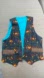 Vintage small Holiday Print Vest Blue Lining Burlap Trim Boho Cottagecore Retro