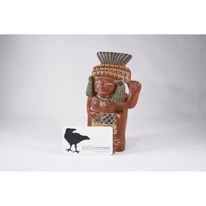 A smaller terracotta figurine of a woman in Inca, Mayan or Aztec style - with a basket to the back to plant a succulent, herbs, or to use as a small flower vase or pen or kitchen utensil holder. In great condition, marked underneath " Mexico"