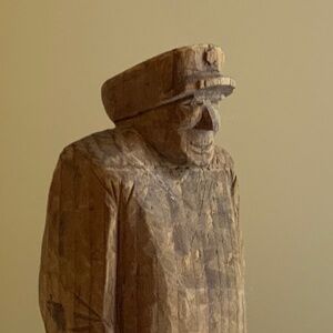 One of its kind small statue of a military man. Hand carved from cedar wood. 15 cm (6 inches) tall.