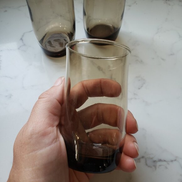 Vintage smoky glass small tulip juice 4 glasses grey brown retro glassware