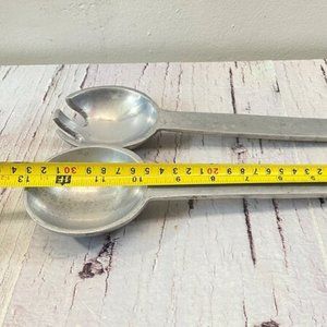 Vintage spoon and fork, Set of 2 Aluminum Salad Serving Fork & Spoon, Medieval Style Mid Century Regency Dinner Party