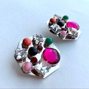 Vintage statement octagonal OOAK clip earrings