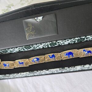Not sure of the country of origin. Some blue enamel has come off over the years