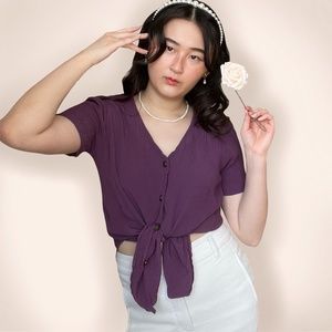 Vintage stretchy ribbed texture short sleeve purple top.
