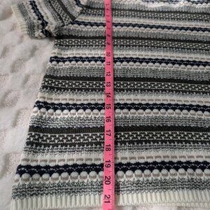 Super cute crochet tee, feels more lightweight, tags are worn but feels like an acrylic and fits like a medium. In PERFECT condition, no rips or stains.