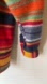 Vintage striped polar fleece shacket top button down sweater. No size tag or material tag readable. Feels like polyester. Oversized. Would fit a size large or medium - depending on how oversized you want it. Perfect colours for fall and the holidays.