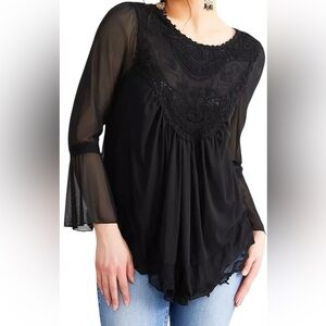 🖤🤍stunning comfy flattering fit chic style boho flowy blouse with bell sleeves Sz Large Approx measurements EUC photographed same day shipping from smoke free home