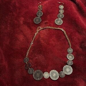 Vintage style Stencilled leaf necklace and drop. Earrings set new