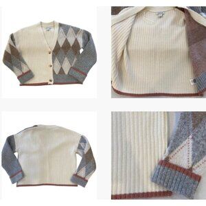Vintage style Womens Argyle oversized crop Cardigan Sweater V-Neck Button-Up XS