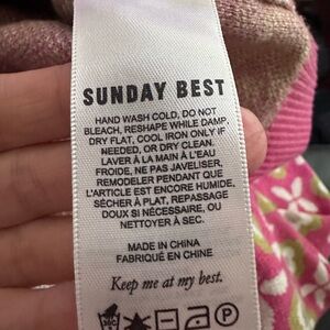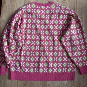 Chic pink sweater with green and white geometric design. Ideal for casual wear. Bought from Aritzia