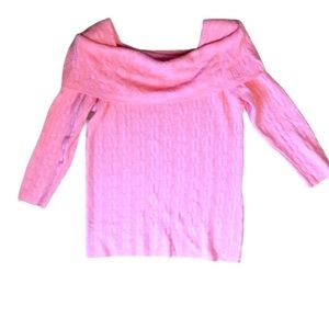 Light Pink vintage Sweater 3/4 Length sleeves, unique neckline with padded shoulders but “off the shoulder” collar