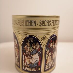 Beautiful decorative tin featuring a stained glass design. Perfect for storage or display.