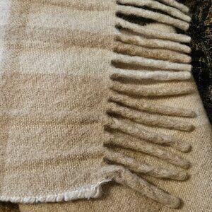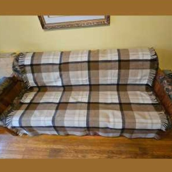 Vintage, traditional, woven wool, fringed blanket, picnic blanket, throw, browns