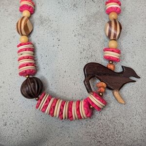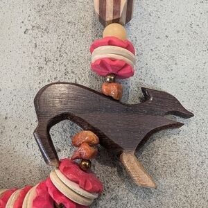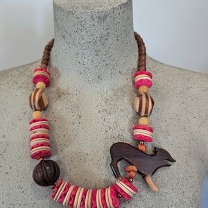 Vintage tribal Wooden & stone Safari wolf Statement Necklace.