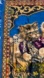 Velvet chenille fringe tapestry wall hanging rug featuring 5 kittens and roses on a fence with ornate border.