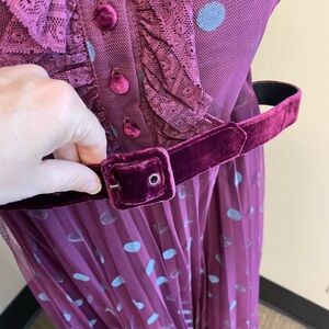 Description: This strapless vintage Betsy Johnson sweater neckline dress features velvet buttons and belt. Can be worn to weddings, events, cocktail parties.