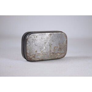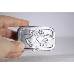 A delightful little metal box, the lid fully removable, featuring wedding bells in a slightly raised pattern on the lid. Perfect for storing a few small items, to line with some fabric and use as a travelling jewelry box, of to make a cute (or gruesome) miniature diorama.