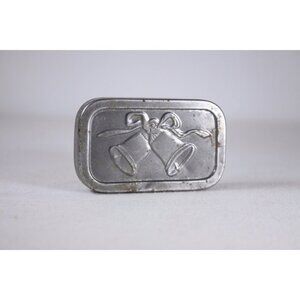 Vintage wedding bells metal tin. small metal storage tin for diy diorama, travel