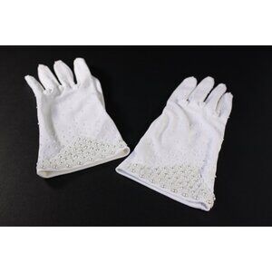 Vintage white beaded short gloves size 7, vintage wedding bridal gloves Nylon