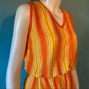 Vintage women’s orange & yellow terry cloth striped dress in size small