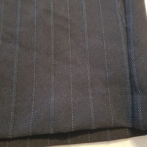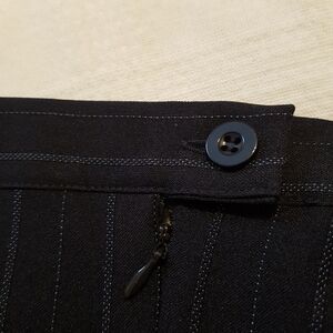 Vintage women's size 16 knee length blue pin striped skirt, closure is a button on the back with a zipper, no pocket, no defects