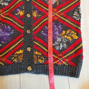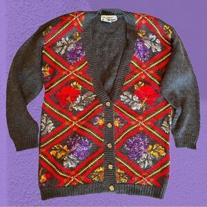 Vintage wool blend oversized knit cardigan plaid floral textured