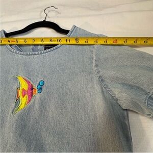 Vintage x Blue J Blue and Yellow Mini Dress Casual Crew Neck Short Sleeve,