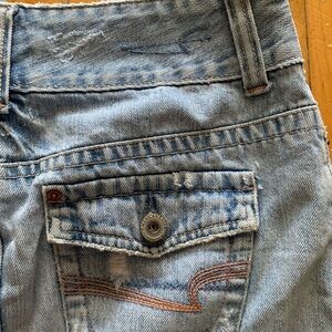Chic light blue mini skirt with back pockets. Perfect for casual wear.