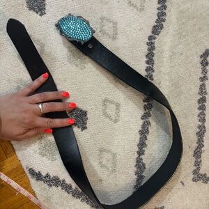 Vintage y2k early 2000s blue diamond metal clasp cowboy belt