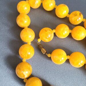 Vintage yellow round plastic Czech(?) beads necklace. Retro jewelry.
